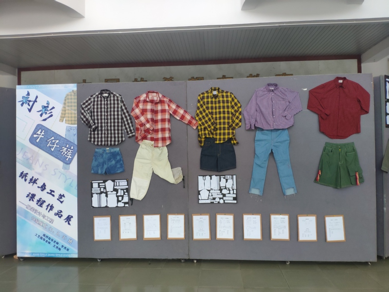纸样和工艺是服装工程的技能,同学们在两位任课老师的教学指导下,掌握了衬衫和牛仔裤的纸样绘图和工艺制作方法,并能灵活运用到不同面料和款式变化中。此次展出的作品,都是同学们各自精心设计的款式,并独立完成选料、购料、出纸样、裁布、缝制完成服装成品的步骤,一块简单的布料在同学们的手中绽放出灵感的光芒,完成了从理论到实操的质的飞跃。