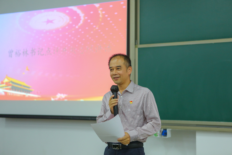 曾裕林书记在最后点评与总结讲话中对各团支部的精彩展示、团支部成员积极参与、活动开展形式丰富多样、活动中所展现的同学互帮互助以及班级的团结精神等表示肯定,并提出每个同学都能融入班级,参与策划、参与组织以及参与活动,这就是自我提升的过程,同时也是展示自己才华的机会。同时曾书记也指出同学们在此次主题活动中存在的不足之处,如个别PPT制作水平有待提升,活动特色、亮点提炼不够,图像摄影水平需要提升等,希望各团支部代表通过上台展示,取长补短,可以更清楚知道此次活动取得的成效以及在哪些方面需要进一步提升,并在下一期团日活动中选取更切合时代要求、更有创新内容的活动形式。