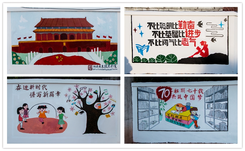 在村委会党员干部的陪同及协助下,同学们分成慰问队、支教队、义诊队、宣传队、环境整治队、车缝组、理发组、墙绘组等8支队伍,分赴幸福村各村小组开展志愿服务活动。宣传队的同学们,走家串户,向村民们宣传,在幸福小学设有免费修补衣服、义诊、理发等服务;慰问队的同学们,来到村里孤寡老人的家里,给他们带去慰问品,给老人免费测量血压,陪老人聊天、唠家常;支教队的同学们又分为手工组、绘画组和歌舞组,带上他们精心准备的手工礼物,与孩子们一起玩游戏,耐心教孩子们折纸、唱歌、画画、辅导作业等;墙绘组负责在幸福小学进行围墙美化改造工作,丰富小朋友的校园文化生活;环境整治队的同学们分成16组,跟随村委同志进行人居环境整治,清洁街道以及杂草等;车缝组的同学,则利用自己在本专业学到的成衣工艺技术,在幸福小学免费帮助村民缝补衣服,如修补裤脚,修补拉链等;义诊队和理发组免费为村民提供免费义诊服务和理发服务……