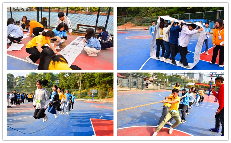 本次素质拓展活动分为三个环节,循序渐进地增强青马班和团员培训班成员间的凝聚力。首先,全体学员通过抽签及游戏任务寻找队员;紧接着,队员们共同努力完成风火轮、团队跳绳、搭桥过河等游戏,团队的默契和合作协调能力也逐渐得到提升;最后,各队伍齐心协力进行拔河比赛,人心齐泰山移,每位成员为争取最后的胜利全力以赴。