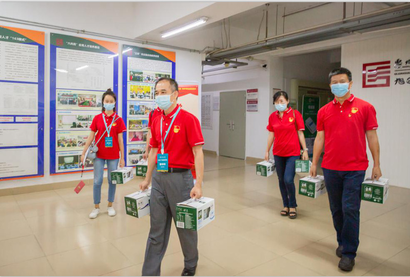 5月15日晚上7:30,书记、院长还带领“党员服务先锋岗”的老师前往宿舍看望首批回来的学生,由于第一批返校学生多为补考心理压力较大的学生,为体现学院人文关怀,给首批返校的学生每人准备了一箱牛奶,让学生感受到温暖。