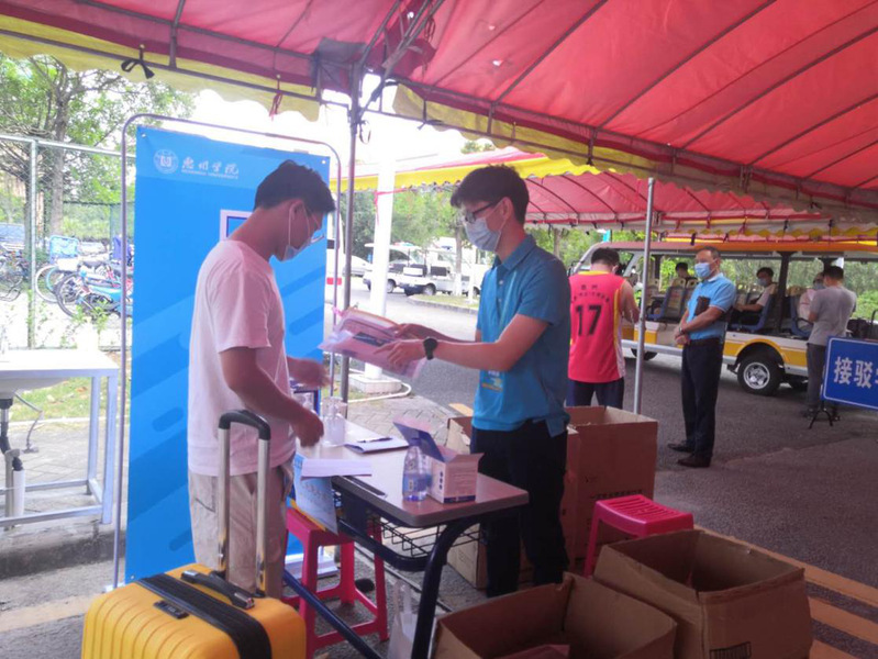 为欢迎学院首批学生返校,让学生体验到回家的温暖,关注首批返校学生的身心健康。5月15日,在学院党总支书记、院长的带领下我们亲自迎接首批返校学生,为他们搬行李、作指引、送上学校提供的健康包,并亲切地慰问学生“欢迎回家”。