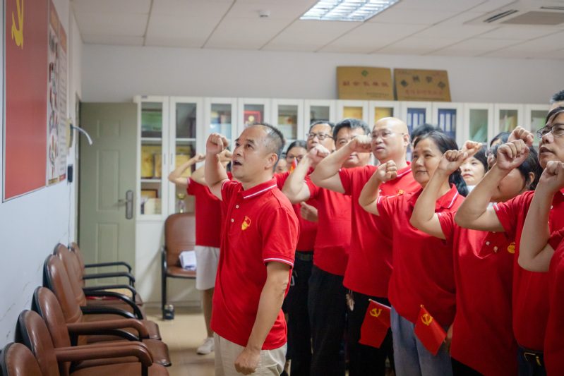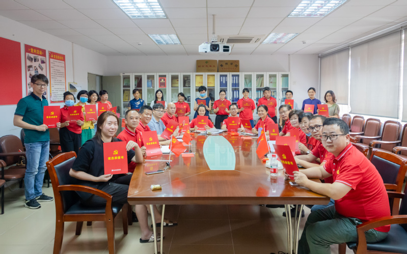 活动从重温入党誓词开始,参与党员面对鲜红的党旗,在党总支书记曾裕林的带领下庄严宣誓,体现了党员们对党的无限忠诚。通过观看短视频《庆祝建党99周年—伟大历程恢弘画卷》,回顾建党历史,在场的党员边看便发出感叹,为中国共产党今天荣耀的来之不易赞叹。会上,各位党员同志郑重地签下作为教师党员应遵守的各项规章制度的党员承诺书。同时各支部书记为与会的支部党员赠送“政治生日贺卡”,并送上生日祝福和寄语。党员们还共享生日蛋糕,忆苦思甜感党恩!