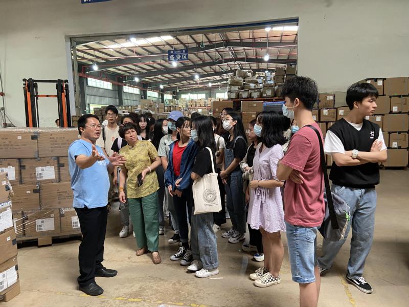 张伟平经理详细介绍了旭日集团物流中心的分布及配送系统,并带领师生参观了真维斯网购物流仓和华南物流中心,耐心回答同学们各种问题。