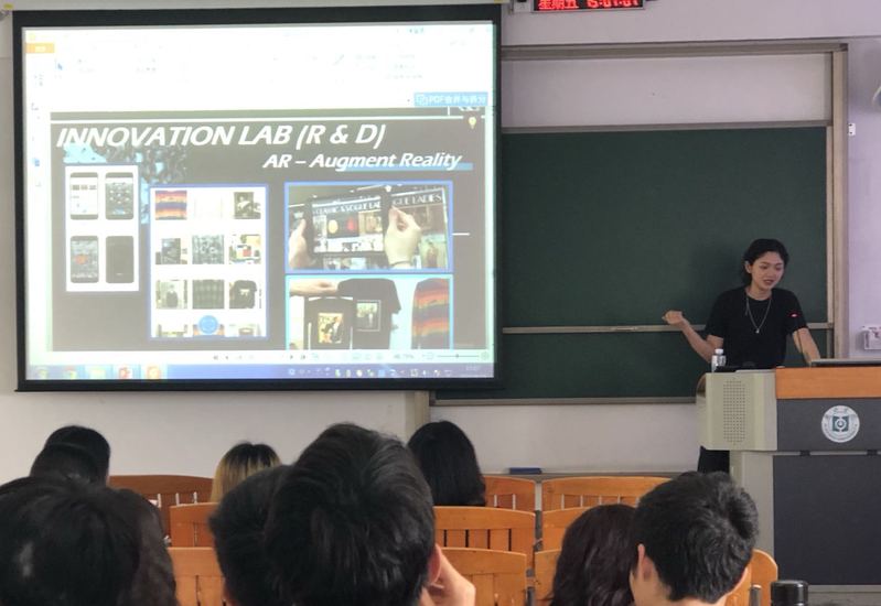 2021年4月16日,为了让学生进一步了解有关服装品牌设计与策划方面的知识,我院黄寒老师邀请了惠州南旋集团的高级设计师郭钟涵女士和创意总监关泽殷先生到我院开展了主题为“Fashion Branding & Design”专题讲座,该讲座嵌入2018级服装与服饰设计1班和2班的品牌设计与策划课程中。