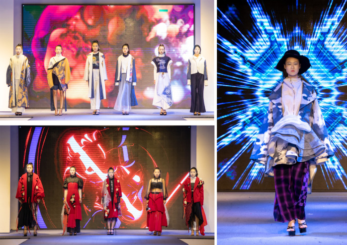 本场创意组中,不同设计风格的24个系列作品以别开生面的展示方式带来了一场服装视觉盛宴。年青的设计师们从文化创意、色彩元素和面料肌理等方向结合当下市场进行大胆创新,在增加艺术性和审美性同时,兼具实用性功能,博得校内外评委们的一致好评,令在场师生大开眼界。如作品《生蚀》以“拥抱自然”为设计理念,利用材料进行艺术化创作,意在呼吁人们的环保意识和生态理念;作品《筑》以古今建筑为主要灵感来源,对建筑元素进行轮廓、图案的改编设计,给人带来一种另类的建筑美学,使人耳目一新。