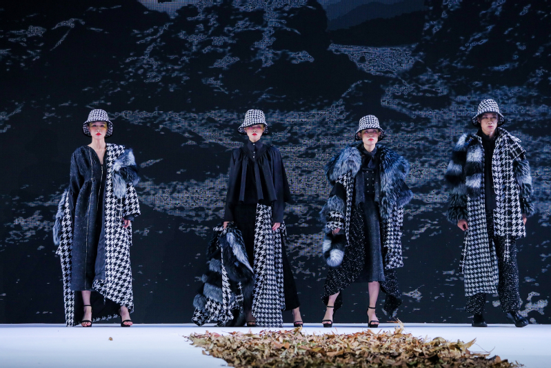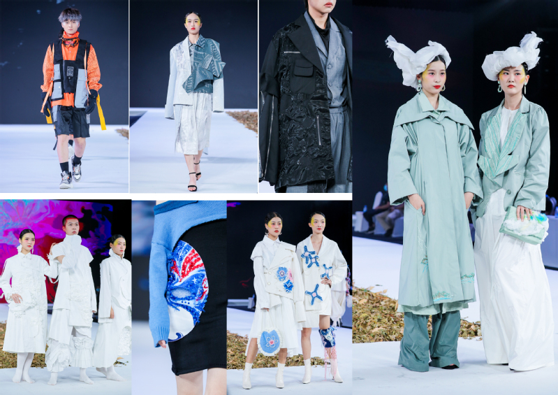 年轻的毕业生设计师们围绕“共生”这一大赛主题,以独具个性的时尚视角和别具一格的创新思维诠释着对现代时尚的理解和对审美的表达,展现了我校学子对服装文化和服饰理念的独特理解能力和服饰设计的运用能力。作品《格局》,以纷繁的社会环境作为设计切入点,通过用方块图案的拼接排列,以经典的千鸟格和裘皮作为表达载体,呼吁人们节约资源,适度生产,保护环境。作品《极限》以后疫情时代下的运动时尚元素为载体,通过插扣解绑、装饰条带、外露拉链进行融入表达,呼吁加强锻炼,倡导全民大健康的理念。《檐》,整体风格朴素雅致,成功地将中国风与民族特色进行融合,通过将中国民间建筑元素融入到现代女装设计之中,充分呈现出了设计的层次之美。23组作品展示结束后,旭日广东服装学院内衣设计团队还特别展出了10组内衣作品,令全场惊艳。