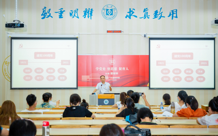 2021年6月2日,旭日广东服装学院教工党支部在服装楼101开展学党史、悟思想、促育人主题教育,学院全体教职工参加主题教育,由党总支书记曾裕林就党史中的思想进行深入的探讨。