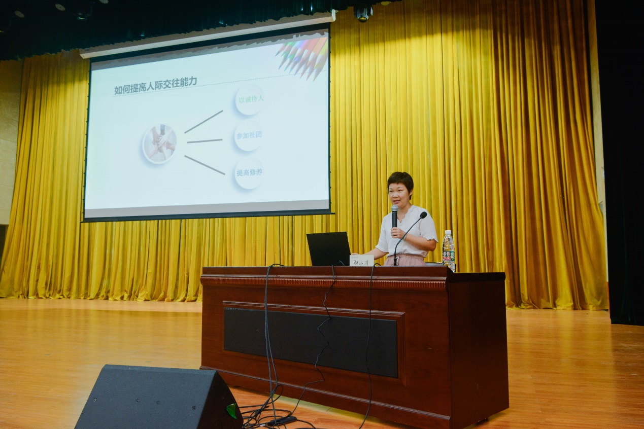 钟小川副主任首先以提出问题的形式引出讲座主题,从 “大学对你来说意味着什么?”引导同学们深入思考上大学的价值意义。钟副主任指出:同学们进入大学之后,需要从生活环境、人际关系、学习目标及方式等各方面来适应大学生活,并且还向同学们传授了如何快速适应大学生活环境和提高人际交往能力的方法。