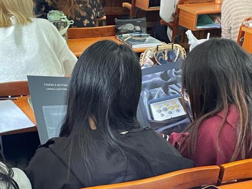 首先,郑伟聪师兄分享了他们的工作经历和创业历程,以及在母校四年的学习经历;之后,他结合公司的核心业务,从高级定制的历史和特点入手,详细介绍了从“接单沟通、选料与报价、量体沟通、外发毛样试制、试衣修改、成品完成、售后服务”等环节的运作与跟单技巧,使同学们对贸易模式下的高级定制流程与跟单技巧有了新的认识。同时,大家对其提供的全定制与半定制样板、面料小样精品等特感兴趣,分别进行认真讨论与分析。