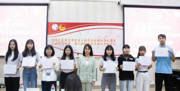 会上老师们为第二期青马班学员颁发结业证书,为优秀学员颁发优秀学员证书,并为第三期青马班授旗。