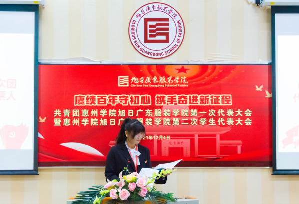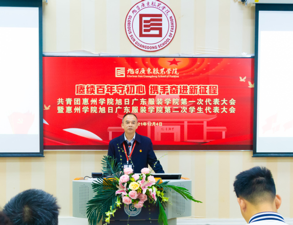 2021年12月4号,共青团惠州学院旭日广东服装学院第一次代表大会暨第二次学生代表大会在服装楼101会议室顺利召开。学院党总支书记曾裕林,院长陈学军,校团委杜建聪老师,服装设计与工程系系主任张恒,以及辅导员郭立峰、孙山山、彭敏珊应邀出席大会。学院领导、嘉宾、正式代表、列席代表共计147人参加了本次大会,大会由辅导员孙山山、团总支第一副书记刘美婷主持。