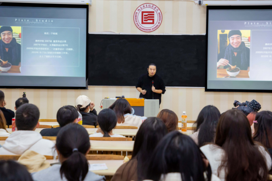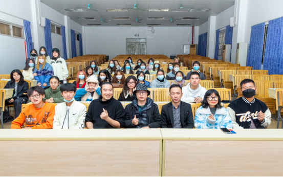 首先,宁俊斌分享了在母校四年有趣的学习经历和毕业后的工作经历和创业历程。从服装设计师如何机缘巧合地跨界到时装摄影师的经历,创业时如何从服装摄影发展到全方位的商业广告及品牌策划和专业培训等领域。宁俊斌还教同学们如何为人处事,善待他人,特别是分析了在与客户、同学、朋友和竞争对手的交往中,如何把握机遇,实现事业从裂变到创新和变革的飞跃试发展。然后,他详细介绍了从“商业广告摄影师需要掌握的技术、如何用短视频轻创业、视频广告创作的核心原理”等技巧,使同学们对新媒体下的商业摄影的发展有了新的认识。同时,他向同学们展示了自己团队制作的成功视频广告案例,同学们听得津津有味,被他神奇的创意效果所深深吸引,大家立刻对广告时尚摄影有了极大的兴趣,纷纷迫切要求去广告摄影公司工作和实习。对此,宁俊斌就求职商业、新媒体工作需要准备哪些东西做了详细分析,并鼓励同学们努力完善自己的作品集,为毕业创业做好准备工作,面对疾风勇敢前行。