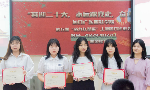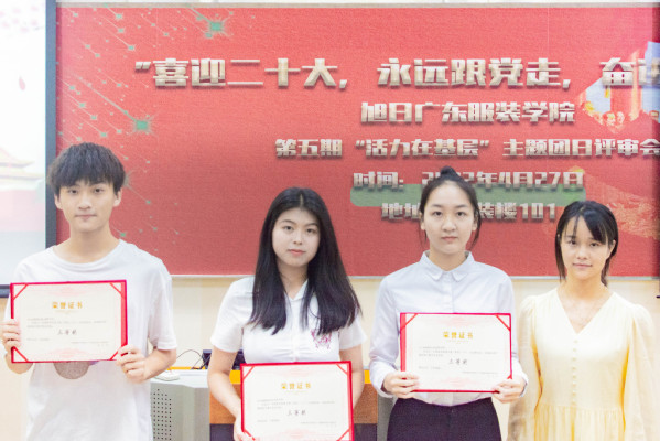 2022年4月27日下午,我院团总支在服装楼101室举办第五期“喜迎二十大、永远跟党走、奋进新征程”主题团日活动评审会。旭日广东服装学院党总支副书记陈刚老师、惠州学院校团委杜建聪老师、团总支书记孙山山老师、辅导员马佩英老师、学生党员、学生干部代表以及各团支部代表参加此次评审会。