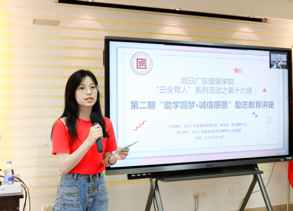 为强化资助育人工作效果,培养我院贫困学子的诚信感恩情怀和自立自强的意识,进一步营造学院诚信、感恩、励志的校园文化氛围。5月18日下午,旭日广东服装学院以服装楼310为主会场、403为分会场,举办了三全育人系列活动之第16场:“助学圆梦·诚信感恩”励志教育讲座第二期,由三位曾获得国家、学校各类资助的学子罗吉慧、廖仕玲、曾少华主讲,辅导员马佩英及经贫困认定的70名学子参加此次讲座。