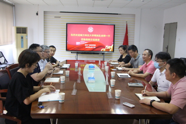 2022年6月17日上午,南方科技大学帮扶队队长罗丹、副队长王保国一行四人莅临我院指导工作,与我院曾裕林书记、陈学军院长等学院全体领导班子成员进行了交流座谈。
