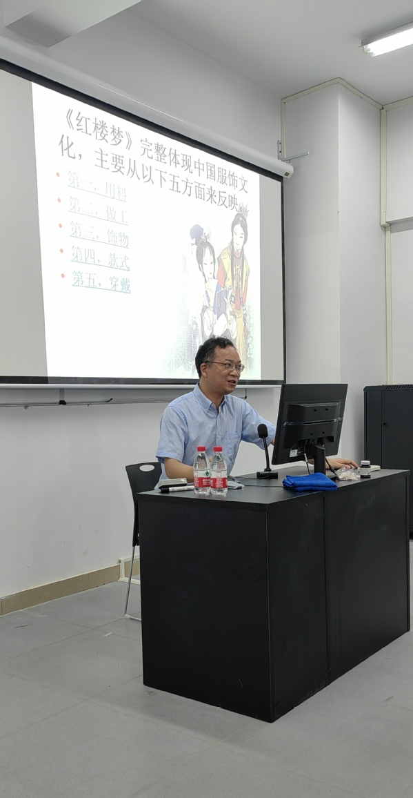 2022年9月21日,我院内衣数字化教学团队邀请惠州学院教师发展中心主任肖向明教授做题目为“《红楼梦》中的服饰文化”的专题讲座,该讲座嵌入到服装设计与工程专业21服工5班的“内衣产品系列设计1”课程中。