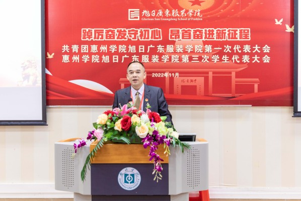 2022年11月6日上午,共青团惠州学院旭日广东服装学院第一次代表大会在服装楼101教室召开。学院党总支书记曾裕林、院长陈学军、副院长朱方龙、学院党总支副书记陈刚,以及全体辅导员出席会议。