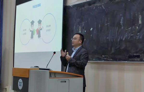 2022年11月30日下午,我院在服装楼101室举办圆梦职场人生--大学生网络应聘面试技巧专题讲座,邀请了资深企业管理顾问—叶艺勇经理为此次讲座主讲人,辅导员孙山山老师带领学院大四毕业生聆听讲座。