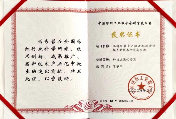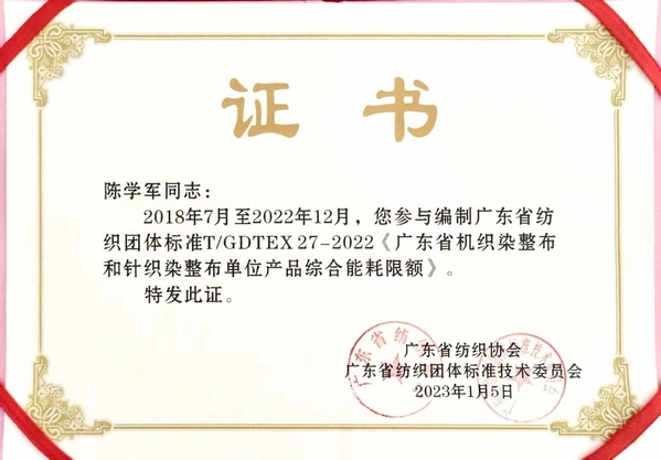 在广东省纺织协会第七届第一次会员代表大会上,学院再次当选广东省纺织协会第七届理事单位,学院陈学军院长负责的项目《品牌服装生产链适配新营销模式的技术研究与应用》荣获科技成果优秀奖。同时,陈学军院长参与编制的广东省纺织团体标准T/GDTEX27-2022《广东省机织染整布和针织染整布单位产品综合能耗限额》获颁证书。