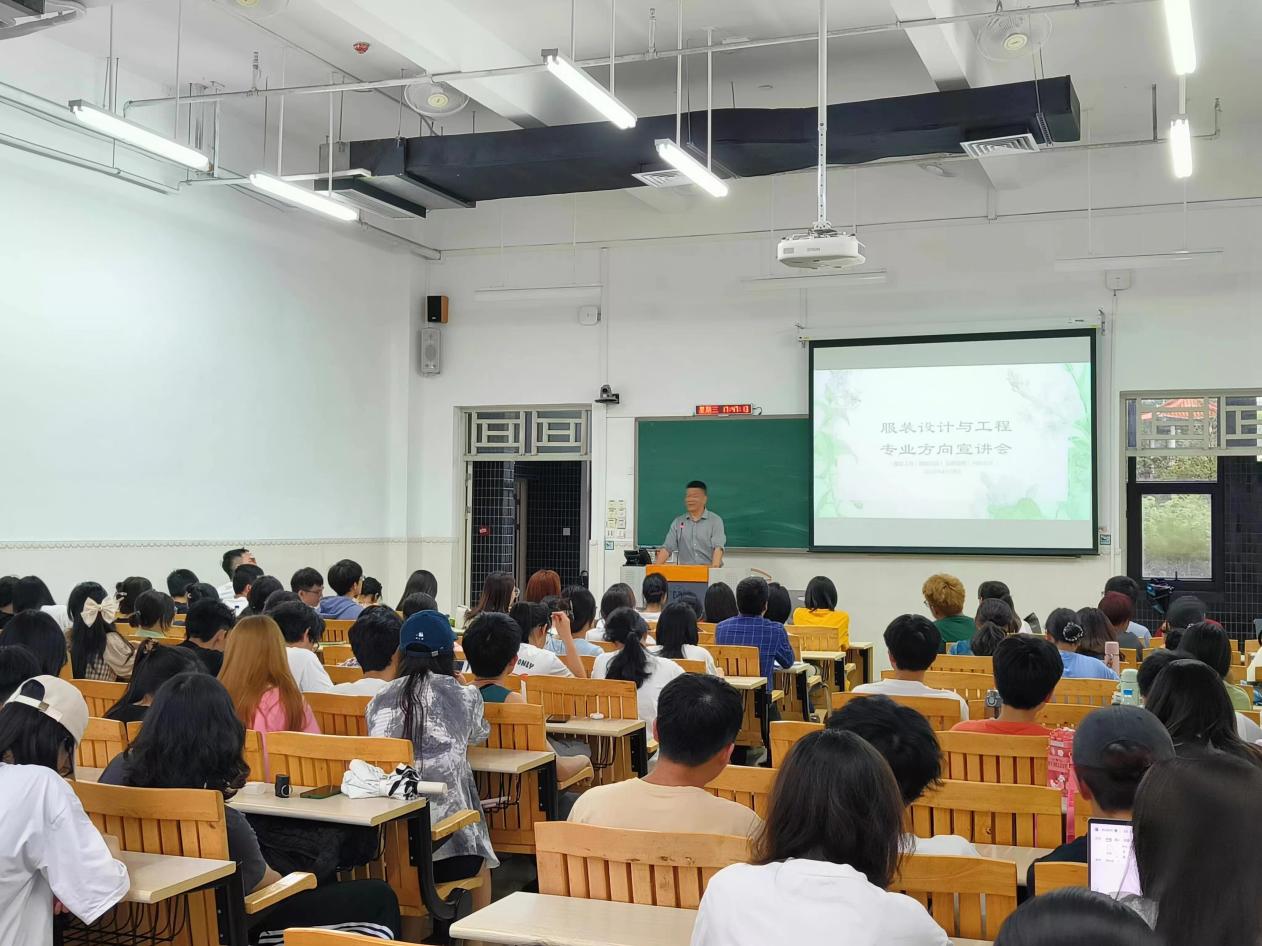 冯麟老师向同学们介绍服装工程方向,服装工程方向涉及范围课程教学特点和发展前景。中国的服装总出口额位居全球前列,产业链完善,在未来有着非常好的就业前景,也向同学们明确就业方向,如服装管理、服饰设计、行政部门与新闻机构、服装行业协会、服装技术、服装教育与研究等方面。