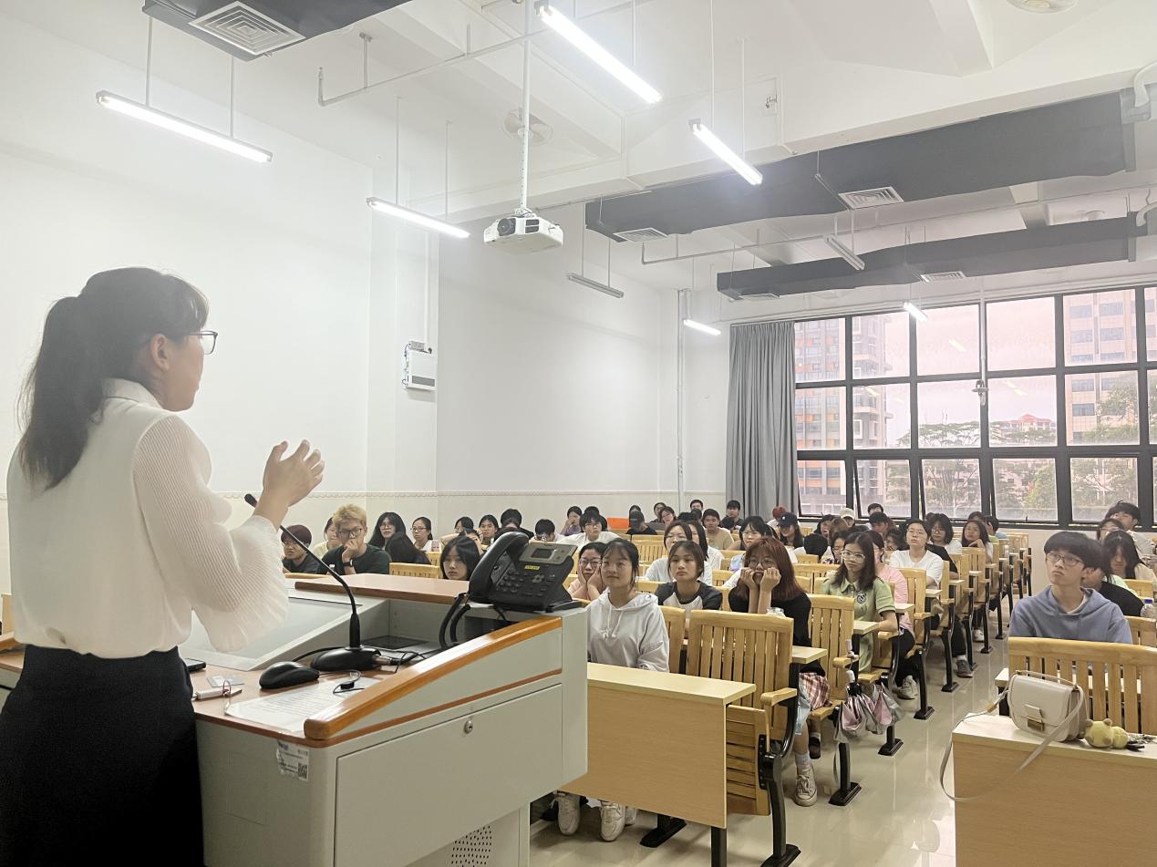 徐丽丽老师为同学们介绍内衣设计方向。该方向的课程安排包括市场调查、服装产品设计、服装产品设计、内衣设计方向课程全面性的特点。内衣教学团队是一支省级优秀教学团队,由2011年起进行课程改革到现在由十余年的时间,该方向模块化教学要求每个学生拥有较强的团队协作能力和自主学习能力。