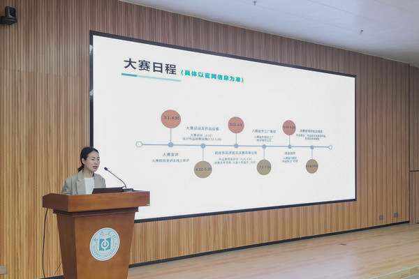 最后,顾经理开展了“尚无境,织未来”—新澳针织新锐设计师大赛宣讲会。作为比赛主办方,顾经理向同学们介绍了大赛历程及简介、评审团队、大赛奖项、设计主题及大赛规则,希望同学们积极了解行业动态和流行趋势,并鼓励同学们参加服装设计类大赛,以赛促学,提高专业知识。