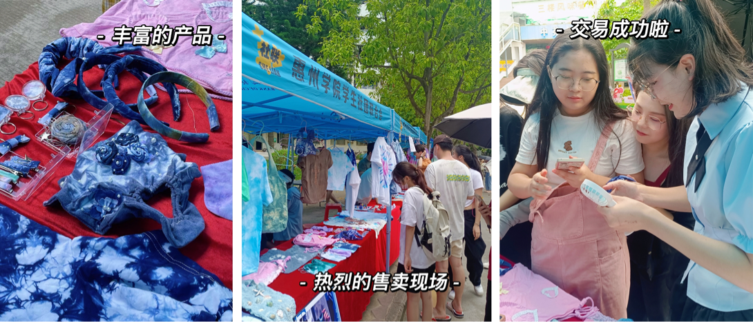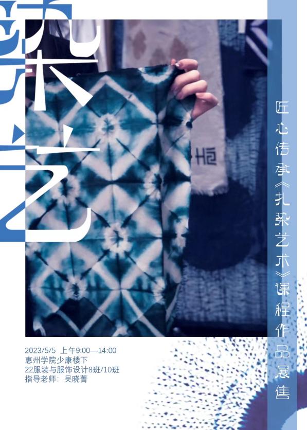 2023年5月5日中午,《扎染艺术》课程成果展售在少康楼附近顺利举办,学院吴晓菁老师、22级服设8班、10班学生参加了此次活动。