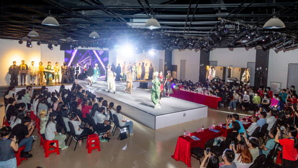 随后本届毕业生服装设计大赛第一场初赛隆重展开。本场比赛评委由有雾服饰有限公司设计总监刘斌、惠州市中明实业发展有限公司林美祥以及旭日广东服装学院罗琴、吴晓菁、袁赛南、陈媛四名老师担任。23组参赛作品经过激烈角逐,《SLEEP ALONE》《幽释》《江山千里望》《墨笔云烟》《鹿影入梦陌上生花》《再现敦煌》《My Beautiful Dark Twisted Fantasy》7组作品最终晋级决赛。