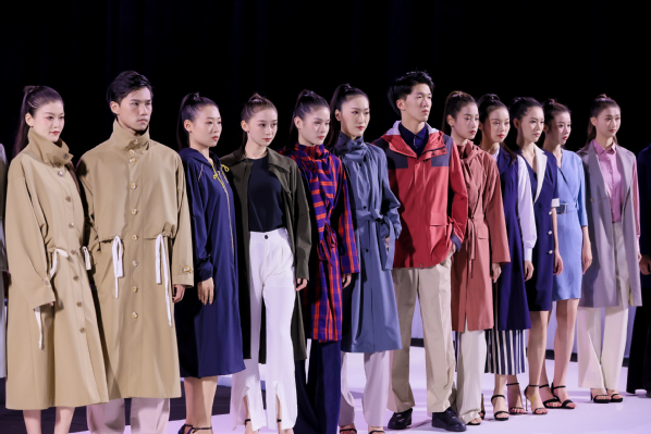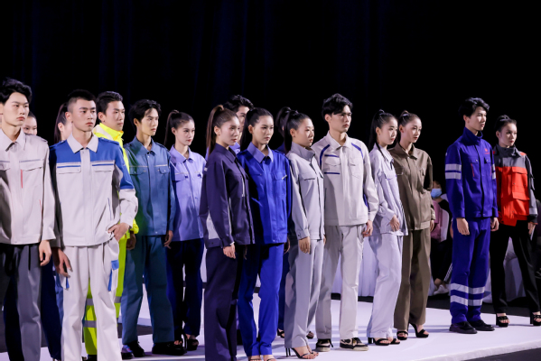 随后,发布会按照工装、休闲装、职业装不同系列,通过模特走秀的形式展现在舞台上,给人不一样的视觉效果。
