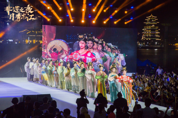 《月满名都》古典汉服秀篇章,主要是通过唐(盛世繁华)、宋(万家灯火)、明(花好月圆)等不同朝代的服饰特色和配饰及相应道具展现中华传统的中秋文化。《印象岭南》岭南非遗秀篇章,联合广东省非物质文化遗产工作站,专门就岭南非遗服饰进行了展演,呈现非遗文化元素。《一树芳华》国潮典范秀篇章,由惠州学院优秀校友童晓妍女士KEILAM高级定制创作的文创产品,既融合了当今潮流文化,又传承了中国传统精粹,用独一无二的国潮经典为观众奉献了一场视觉盛宴。