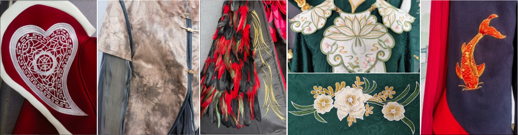2023年10月13日,我院2023年“粤秀良缘”纺织非遗主题系列设计优秀作品在田家炳教学楼1楼如期展出,本次展出时间为两周。该次展出的12组优秀作品是在冯麟、袁赛南、李宁、于芳、刘东、罗琴6位老师的指导下,由21服工1班、21服工2班、20服设1班、22服工9班5个班的同学以交叉团队合作的方式,自己设计、打版、制作完成的。