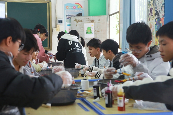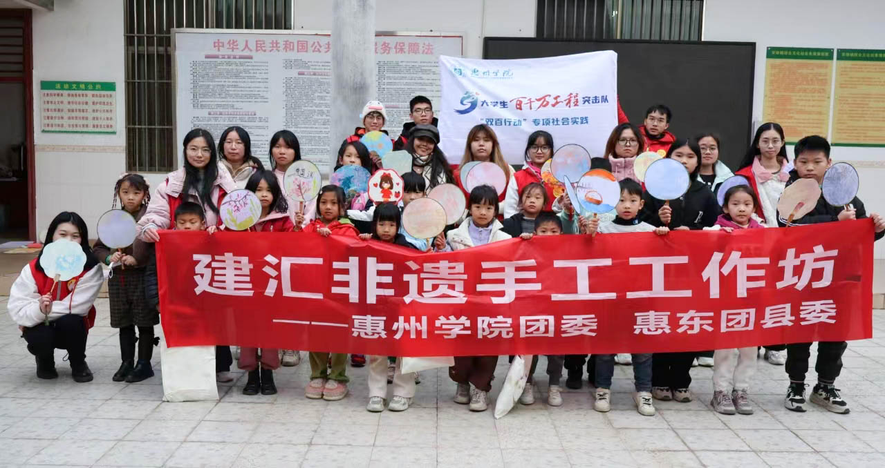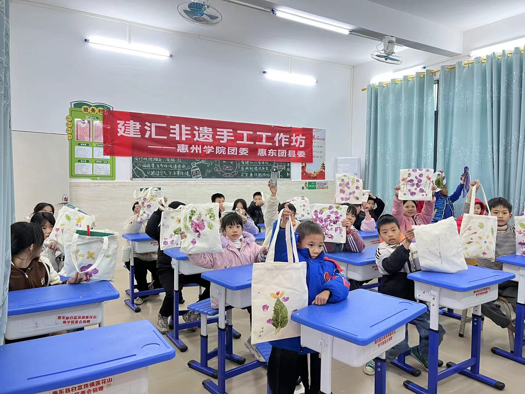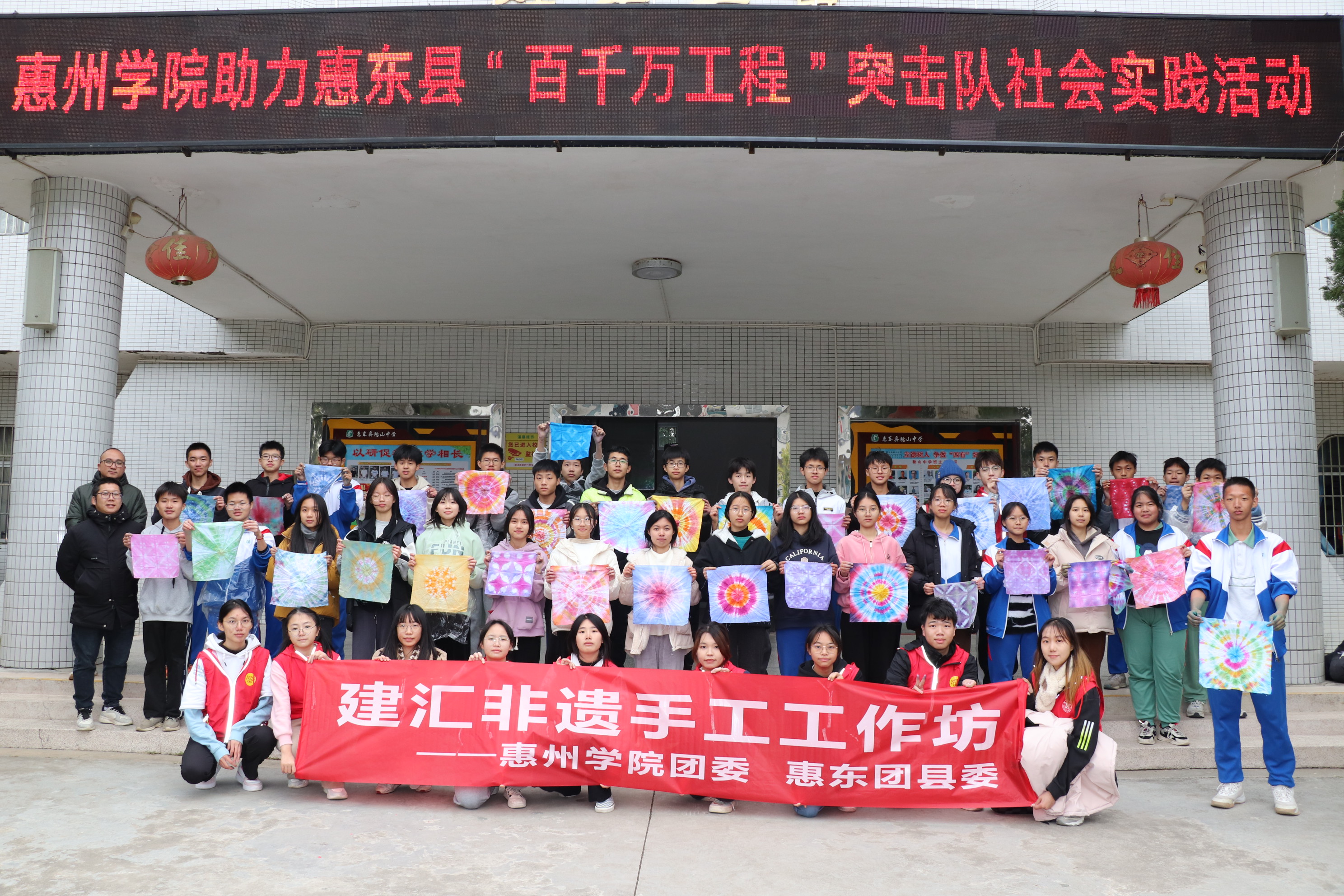 为深入学习贯彻党的二十大精神,响应广东省“百千万工程”号召,以青春力量助推“双百行动”落地,2024年1月22日至26日期间,服装学院非遗手工工作坊选派9名志愿者加入惠州学院“百千万工程”突击队,分别前往惠东县白盆珠镇白马村、横江村,安墩镇宝安村和稔山镇范和村进行寒期社会实践,开展以“染的奇妙”为主题的非遗手工体验课共14次,内容包括扎染、水拓和植物拓印等,充分发挥服装学院的专业优势为惠东县的乡村美育作贡献。