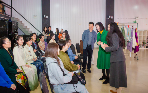 会上,首先由服装学院佘婕老师为交流团的师生们介绍了汉服的起源以及不同朝代汉服的特点和区别,并通过图片和真人展示等方式讲解汉服的穿着方式和文化内涵,让交流团的师生们更加直观地了解汉服文化。