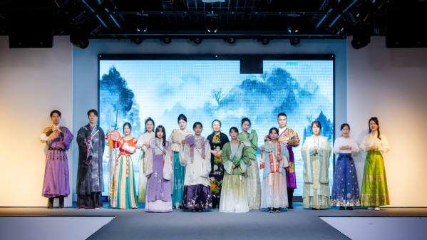 随后交流团的师生们各自挑选了喜欢的汉服款式进行试穿,沉浸式体验了汉服文化,感受汉服文化的无穷魅力。最后,在周婕老师的指导和编排下,交流团的师生们和我院的师生们共同完成了一场精彩的汉服T台秀,在古风的音乐和背景下,大家携着唐风宋韵款款而来,定点做动作、摆造型,充分展示着每一款汉服的风格特点,台上风光无限,台下掌声雷动。