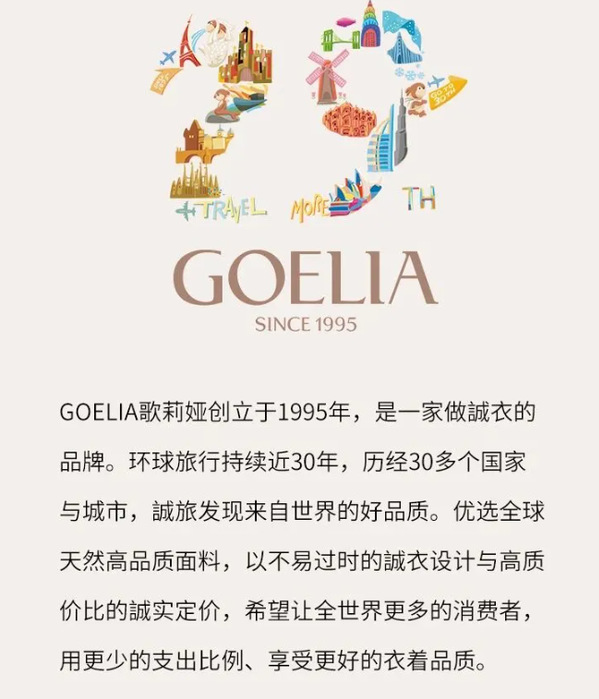 歌莉娅创立于1995年,29年专注高品质与高质价比的中国誠衣品牌!希望让更多的消费者,用更少的支出比例,享受更好的衣着品质。