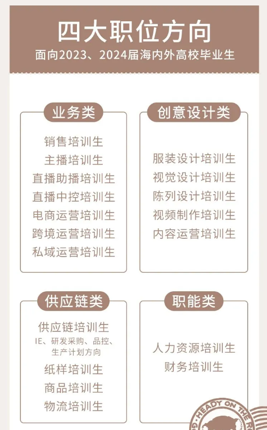 ?18个岗位方向可供选择(直播/零售/电商/跨境/私域/创意设计/供应链/职能等)