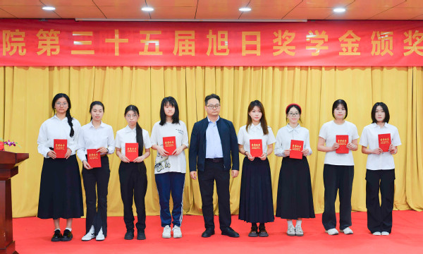 随后,单陈总监向获奖同学和集体表示热烈祝贺。他以旭日集团的发展历史和新中国发展史切入,表达了无论是企业还是国家,每一个阶段都有每个阶段的战略目标,每一代人都有每一代人的“上甘岭”,他希望同学们珍惜在校学习的时光,努力提升本领,在人生之路上不停奋进,不断成长,点亮自己的人生,勇于承担新一代青年人的历史责任。