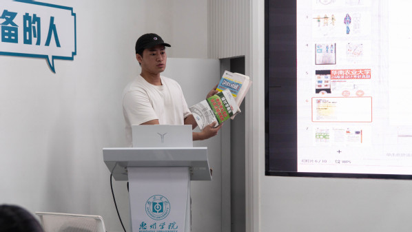 吴映杰同学围绕考研复习策略展开。英语考试方面上,他强调词汇积累与真题研习的重要性,建议制定背诵日程、精读外刊以提升能力;政治考试方面,提出“分阶段、抓重点”复习思路,讲解选择题与主观题答题技巧;专业课复习时,分享搭建知识框架、整理笔记、分析真题等实用方法,还传授时间管理窍门,助力同学们高效备考。