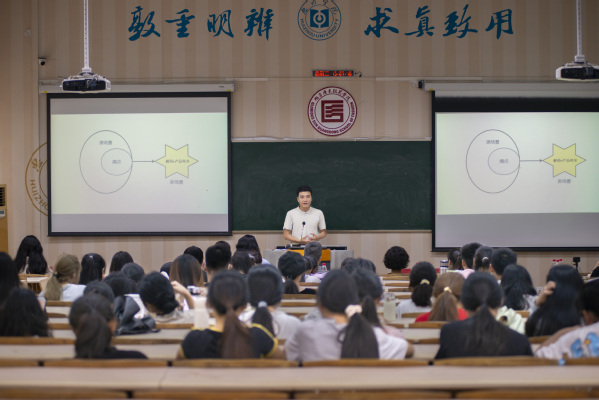 随后,彭晓彤围绕“商务场合着装艺术”展开专业解读,系统阐述了“三色原则”“三白原则”等核心礼仪规范,结合不同体型穿搭技巧、面料色彩选择要点,通过正反案例对比,直观呈现职场着装对个人形象与商务沟通的影响。她还深度分析了服装行业在商务形象领域的创新模式,如定制化职场穿搭服务、智能服饰技术等,为在场学生打开了创业思路。
