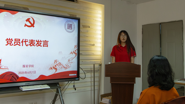 2025年6月7日上午,服装学院党委在服装楼310会议室为2025届毕业生党员举办“最后一堂党课”暨上半年党员“政治生日”主题党日活动。学院党委书记张小琨、党委副书记李少璃、学生党支部书记及全体学生党员共同参与,以庄严仪式激励党员不忘初心、勇担使命。