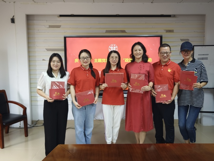 张小琨为上半年入党的22名党员同志颁发了定制的政治生日贺卡与红色主题纪念品,并合影留念。“从递交入党申请书时的忐忑,到如今成为“双带头人”支部书记的担当,20年党龄让我深刻体会到,党员不仅是身份,更是责任。”教师第二党支部书记朱方龙作为老党员代表发言时,分享了从青年开始的成长历程。他勉励青年党员:“要像守护服装针脚般严守党性原则,用匠心精神践行初心使命。”