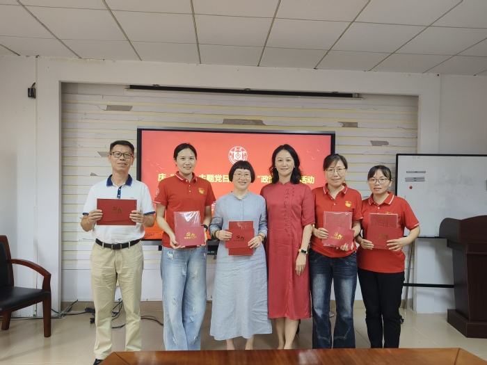 面对鲜红的党旗,组织员郭立峰领誓,全体党员高举右拳,重温入党誓词。“我志愿加入中国共产党……”铿锵有力的誓言回荡会场,彰显着新时代教育工作者传承红色基因、矢志育人的坚定决心。