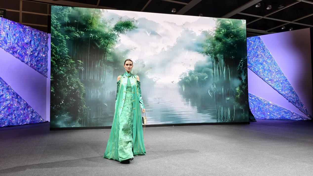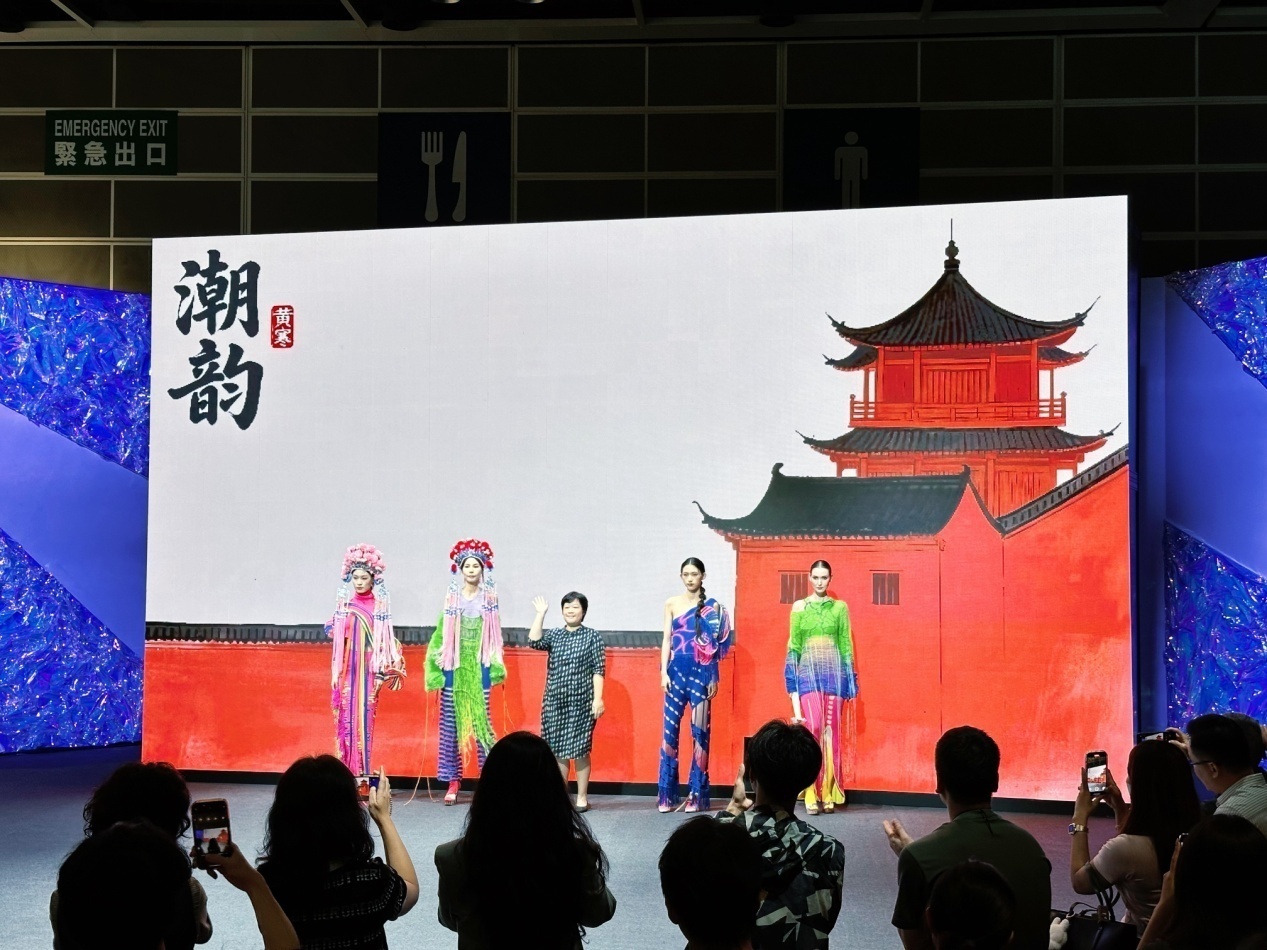 在展览中,我院与香港理工大学时装及纺织学院团队共同搭建联合展台,全面呈现了学院在服装服饰设计与技术创新领域的深厚实力。本次展览分为静态和动态两部分,全方位展现了我院教师、学生设计的服装、鞋包作品,作品融合传统美学与现代创意,充分展现了我院师生卓越的设计才华与过硬的专业水准,引发国内外广泛关注。