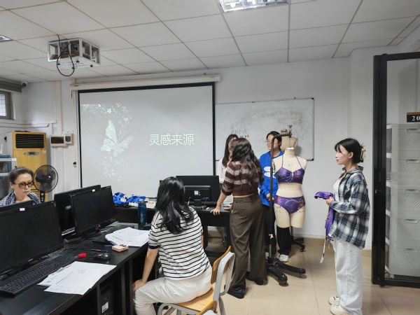 活动期间,课程组先后组织24服工4班《内衣产品系列设计1》(家居服产品)、23服工4班的《内衣产品系列设计3》(泳装产品)课程的期中考核答辩。答辩现场,,同学们精神饱满、准备充分,围绕设计理念、创作过程等方面进行详细阐述,展现了较好的实践功底和积极的学习态度。
