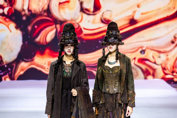 经过激烈角逐,作品《锈身·秀生》获得金奖,《菌络褶川》《苔痕秘境》获得银奖,《瓷鸣》《蓝血革命》《素编逸韵》获得铜奖。此次大赛的成功举办,不仅为学生提供了展示专业能力的舞台,更推动了服装教育与行业前沿技术的深度融合,为华南服装产业高质量发展注入青春动能。