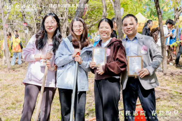 春意渐浓,绿意萌发。3月14日,惠州学院第五届“八秩惠院·春彩纷呈”师生校友植树节活动举行。值此学校迎来建校80周年之际,服装学院2013届校友钟伟雄、邱景东作为校友代表重返母校参加植树活动,以实际行动支持校园生态建设,为“绿美校园”增添一抹生机盎然的绿色。