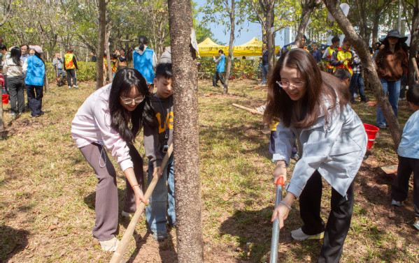 在植树过程中,师生与校友还围绕校园发展、人才培养以及行业发展等话题进行了交流。大家纷纷表示,参与植树活动不仅增强了生态环保意识,也进一步加深了对母校的情感联结,在共同劳动中感受团结协作的力量。