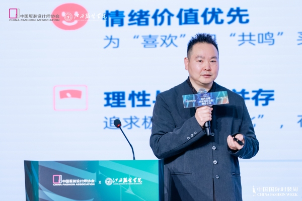 在会议中,惠州学院服装学院教师、真维斯品牌生态圈协同创新中心首席设计师黄刚发表了题为《消费新动能——Z世代主导下的审美平权与设计民主》的精彩演讲。他深入剖析了当前消费市场的变革趋势,特别是Z世代作为消费主力军对时尚产业的影响。黄刚指出,Z世代追求个性化、多元化,他们的审美观念正在推动时尚产业的平权化进程,使得设计更加民主化、大众化。这一观点引发了与会者的广泛共鸣,大家纷纷就如何把握这一消费新动能,推动中国时尚产业的创新发展进行了热烈讨论。
