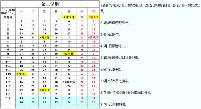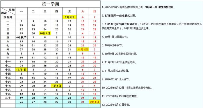 【学校校历】惠州学院2025-2026学年校历